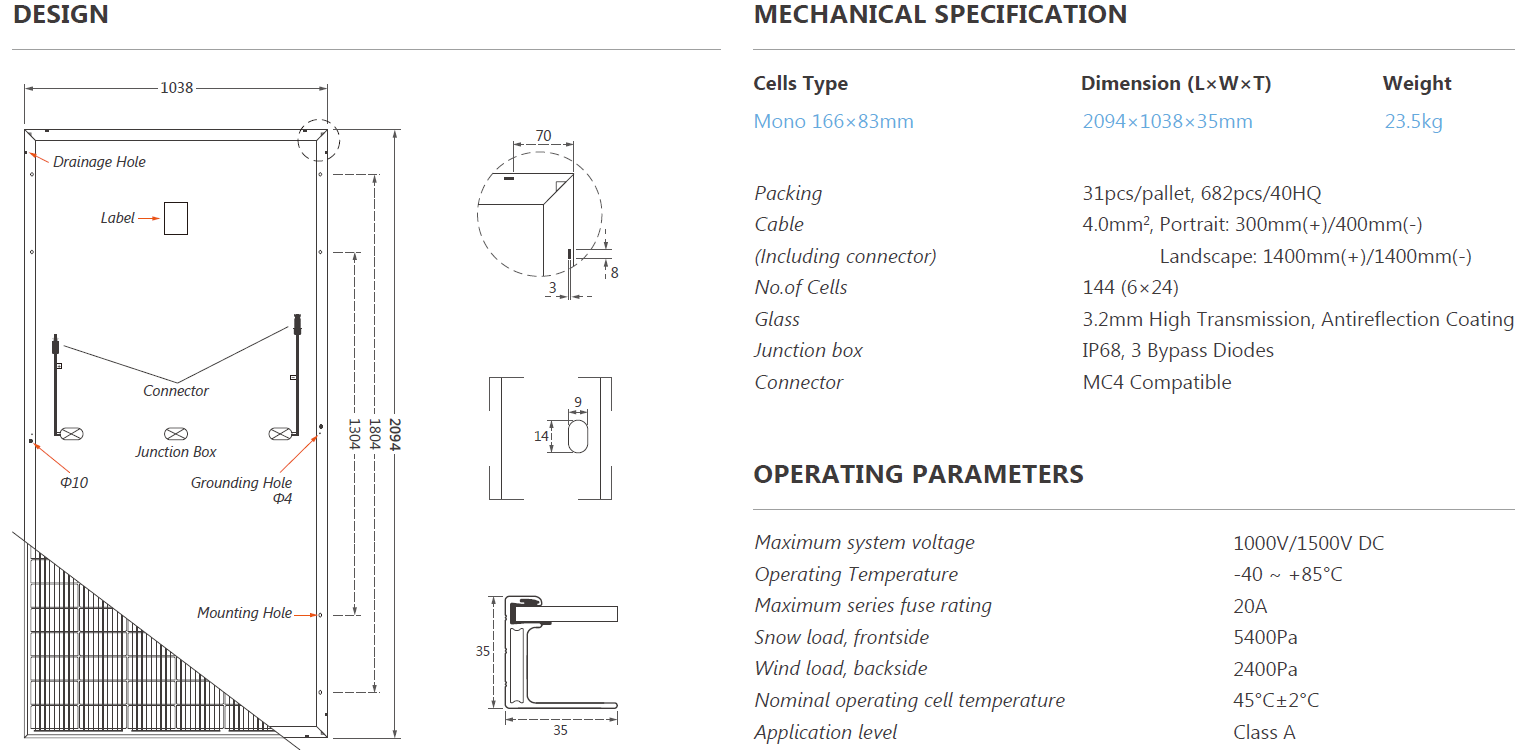 All the solar cells are made by top class brand, like TW Solar, Longi Solar