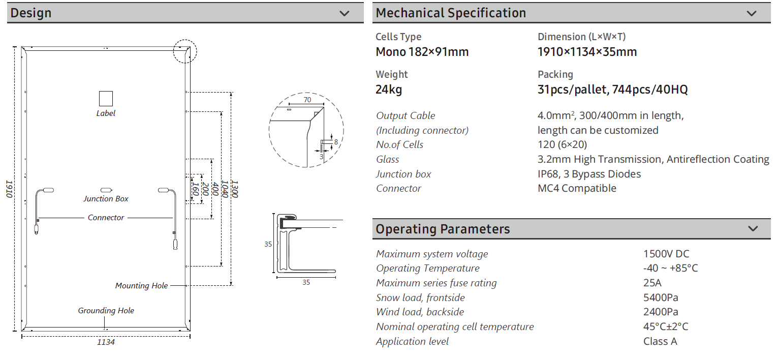 Irradiance 1000W/m², Cell Temperature 25℃,Spectrum AM 1.5 |