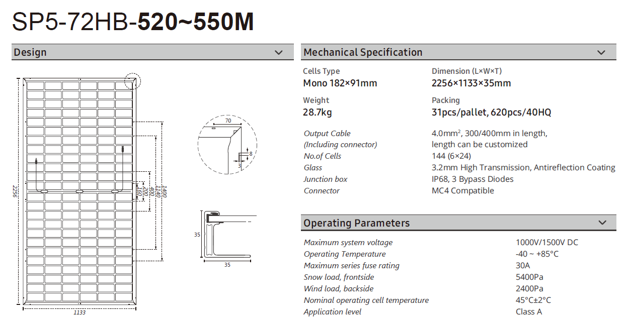 | 520W-550W 182mm Bifacial 72 Half Cut |