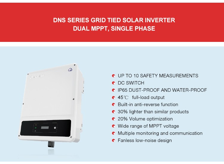 GoodWe’s NS series of inverters adopts cutting edge technology in solar photovoltaic power conversion. Ideally suited to newly-built housing projects or small domestic installations, it offers 1-3kW models for installations as small as 3 PV modules. Comprehensive MPPT technology, software and hardware technology are guaranteed to maximize lifespan.