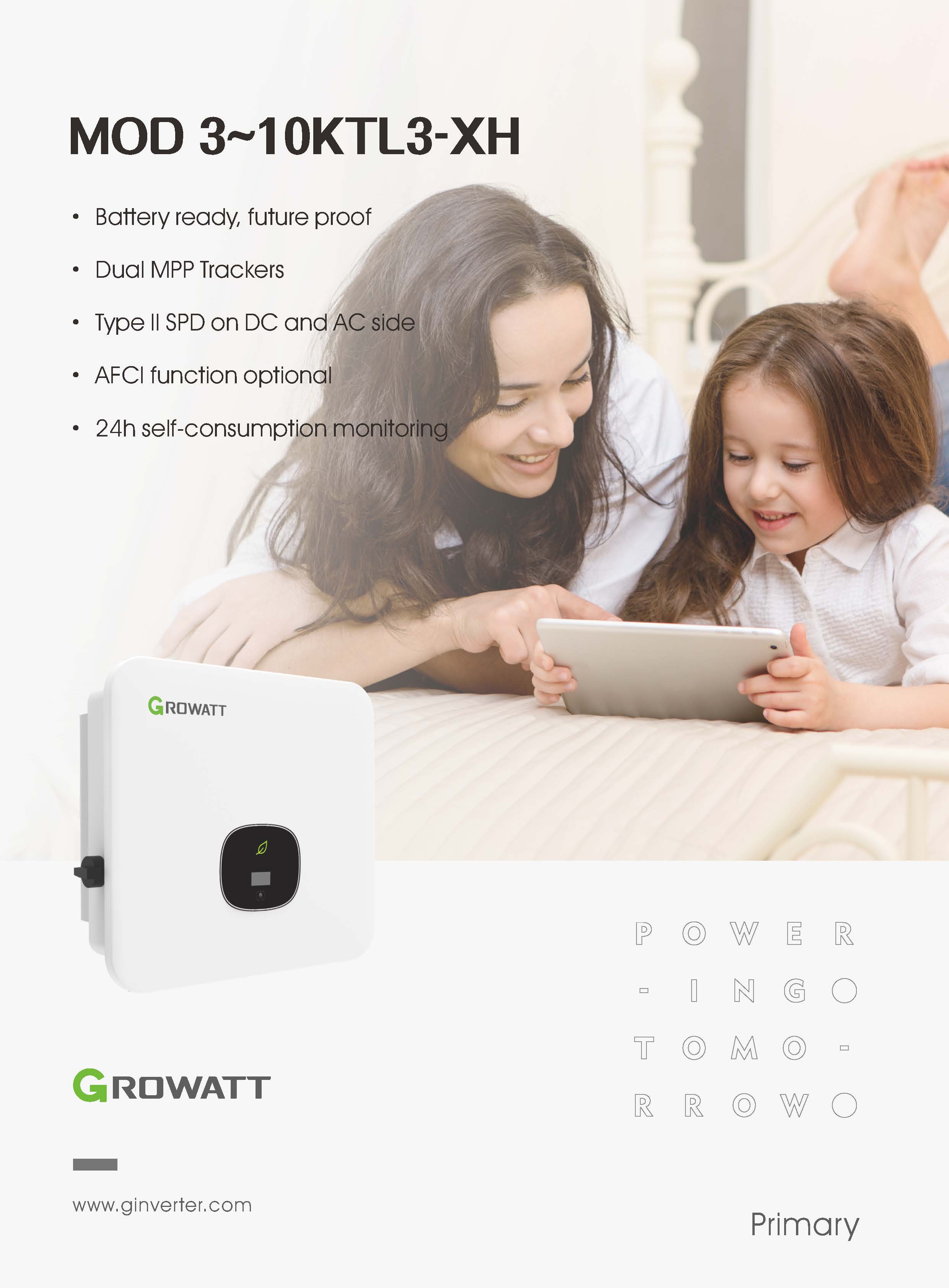 The Growatt MOD generation of photovoltaic inverters is ideal for small installations as it is compact and easy to install, for indoor applications. The Growatt Growatt MOD inverters have 2 MPPT, Type II SPD on DC and AC side, string monitoring, and Arc-Fault Circuit Interrupter (AFCI) function. The Growatt MOD inverters have a 10 years product warranty.