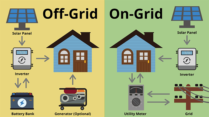 An off-grid solar system is not connected to the electricity grid and requires battery storage. Off-grid solar systems must be designed correctly in order to generate enough power throughout the year and have the necessary battery capacity to meet the installed locations electrical energy requirements or demand.