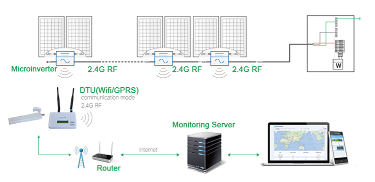 3.The data collector (DTU) is used to collect the operating data of the micro-inverter, and the power generation can be monitored on the S-Miles Cloud platform